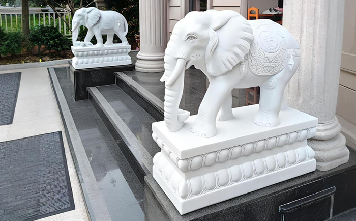 石雕大象自古被視為祥瑞之獸,其“鎮(zhèn)宅辟邪、守財(cái)納?!钡南笳饕饬x深入人心。優(yōu)藝園林雕塑團(tuán)隊(duì)精選優(yōu)質(zhì)漢白玉、花崗巖等石材,通過手工雕刻與機(jī)械精磨結(jié)合,塑造出形態(tài)逼真、細(xì)節(jié)飽滿的大象造型。無論是銀行、企業(yè)門口的威嚴(yán)守護(hù)象,還是別墅庭院中的溫馨家庭象,皆可依據(jù)客戶需求調(diào)整造型比例、裝飾紋樣及底座銘文,完美適配不同場景的文化表達(dá),彰顯尊貴氣質(zhì)。