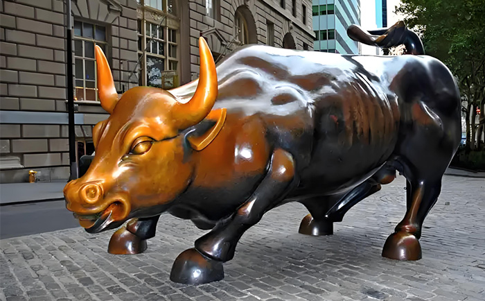 紐約曼哈頓的華爾街銅牛,無疑是全球最具影響力的銅牛雕塑之一。這尊由意大利裔藝術家阿爾圖羅?迪?莫迪卡創(chuàng)作于 1989 年的作品,重達 3.2 噸,以肌肉虬結的軀體、昂首前沖的姿態(tài),成為 “牛市” 的象征。其誕生背景頗具傳奇色彩:在 1987 年美股崩盤后,藝術家自掏腰包 36 萬美元鑄造銅牛,連夜安放在紐約證券交易所前的圣誕樹下,寓意 “經濟復蘇”。盡管初期因 “非法放置” 引發(fā)爭議,但民眾對它的熱愛最終讓其落戶于百老匯大街,成為紐約的城市名片。2009 年,中國國旗首次在銅牛旁升起,見證了中美關系的深化;而 2019 年的搬遷計劃,則引發(fā)了全球對其文化價值的再思考。這尊銅牛不僅是金融市場的晴雨表,更傳遞著逆境中昂揚向上的信念。